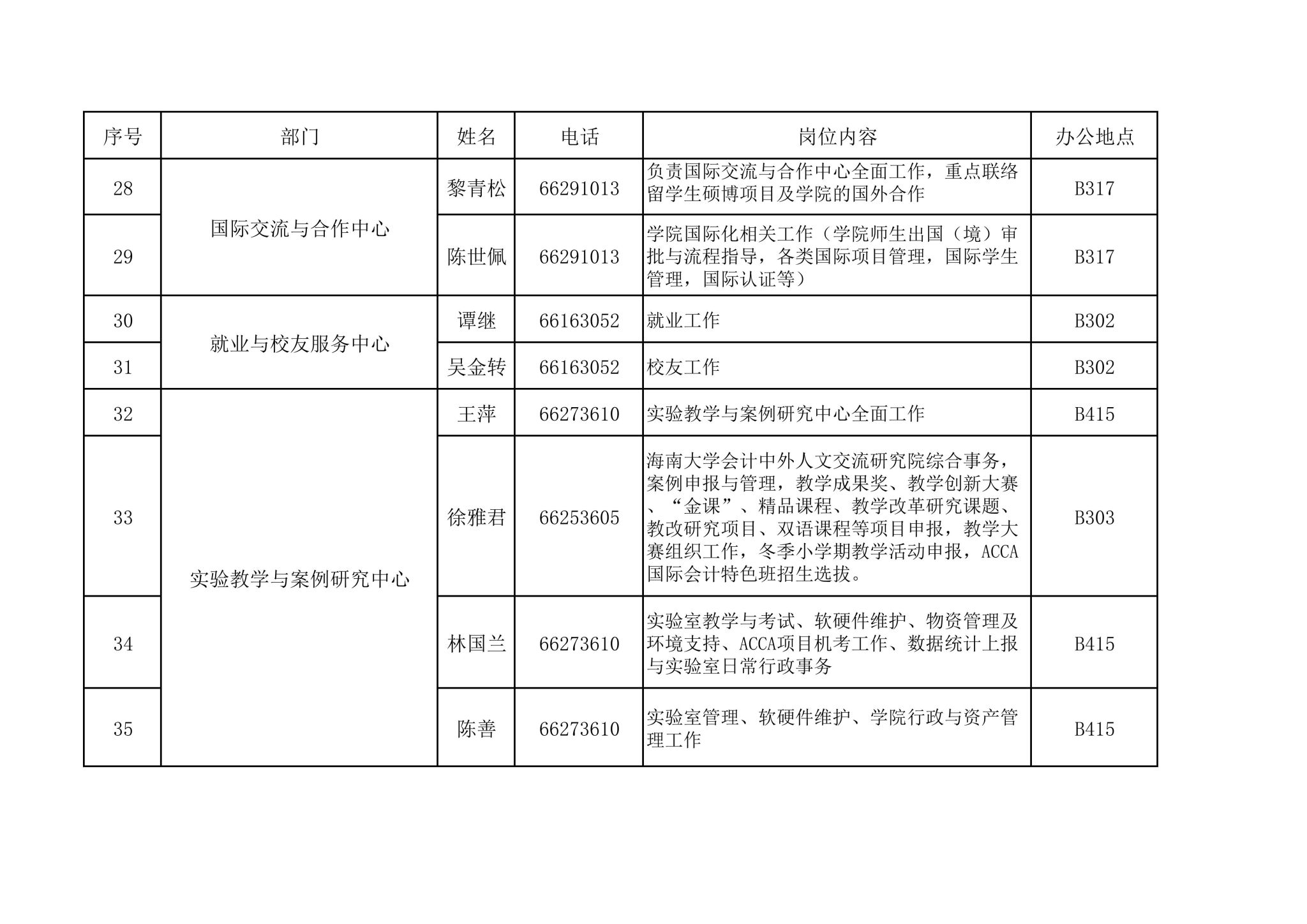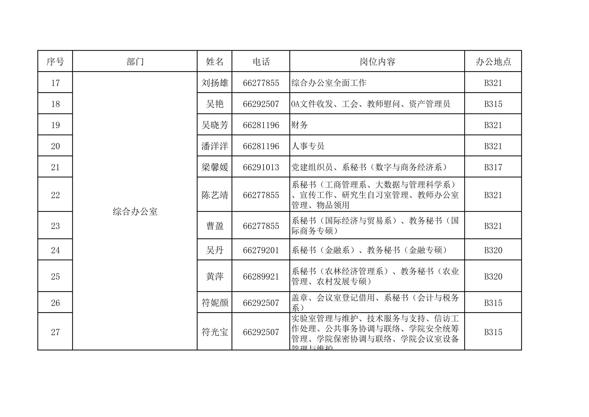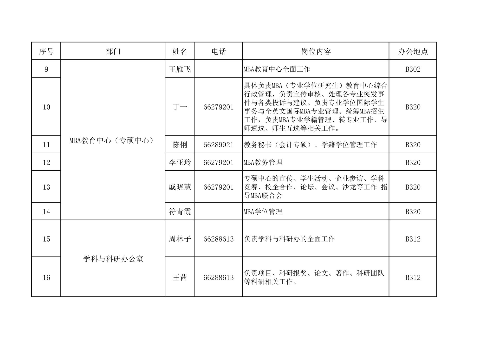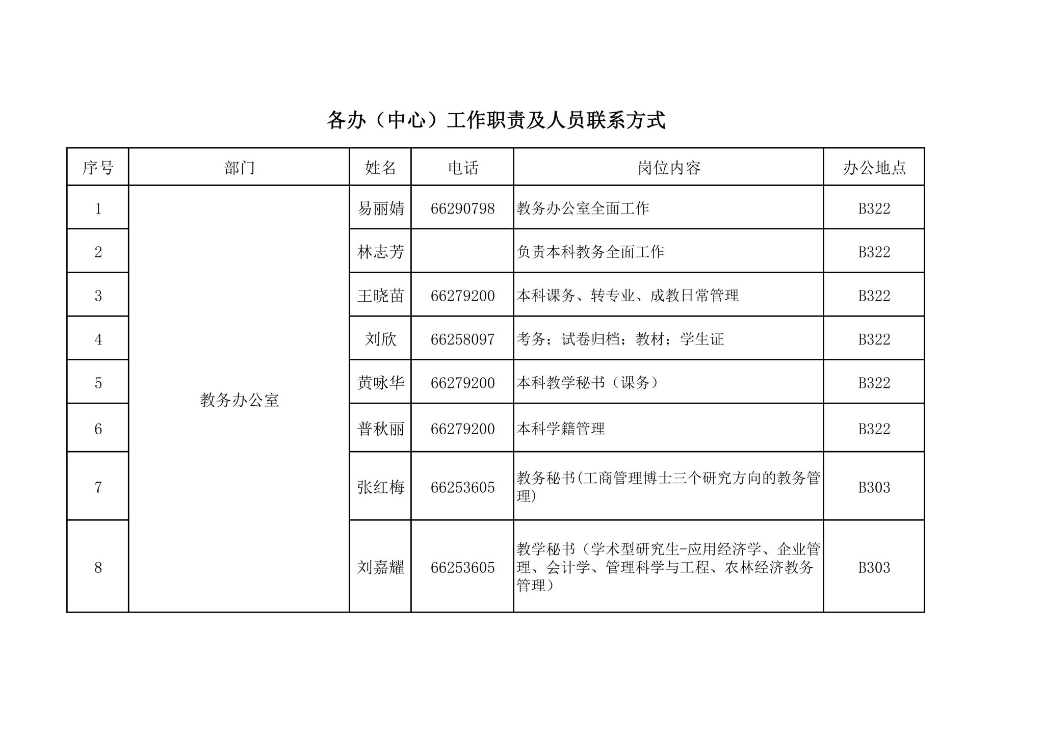 管理部门通讯录