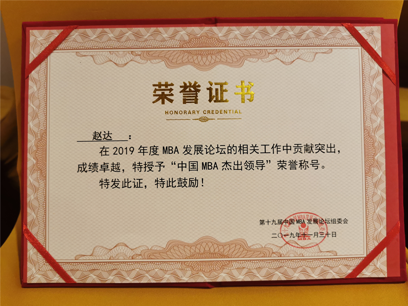 bevictor1946韦德官网管理公司赵达副经理荣获2019年“中国MBA杰出领导”