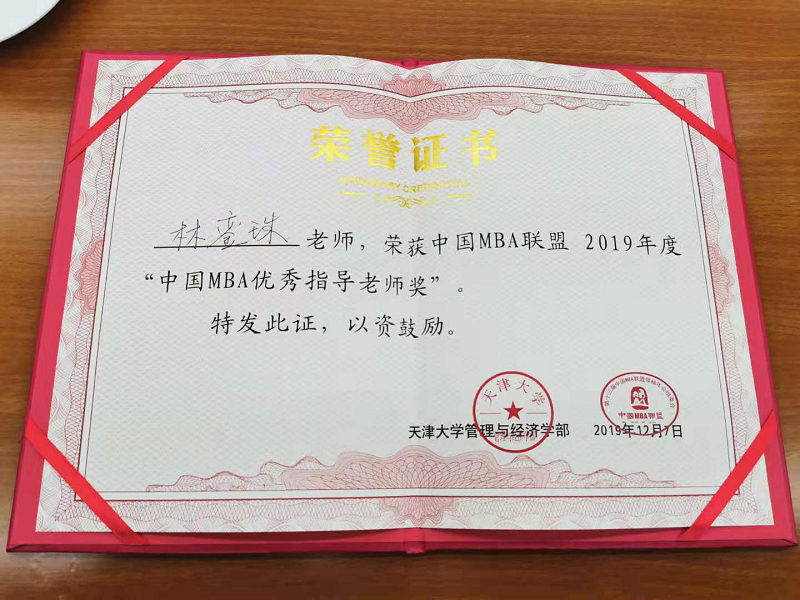 bevictor1946韦德官网管理公司林銮珠教授获“2019中国MBA优秀指导老师奖”