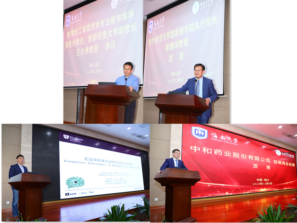 王永贵、李勇、陈德球、管延军教授、赵晓亮分别作主题发言。与会专家学者围绕工商管理学科如何服务海南自贸区、自贸港建设,服务海南经济社会发展和国家战略展开了深入探讨。