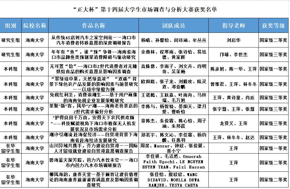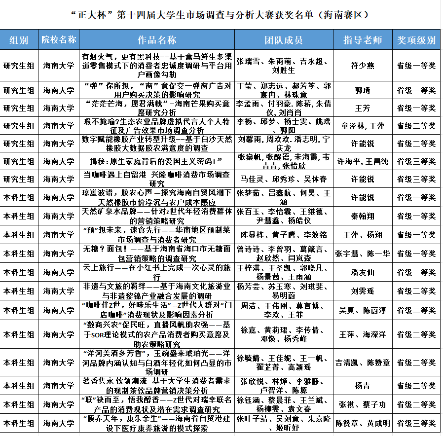 “正大杯”第十四届全国老员工市场调查与分析大赛于6月2日揭晓,bevictor1946韦德官网bevictor1946韦德官网荣获多个奖项,其中,研究生组获国家级二等奖1项,三等奖1项,海南赛区一等奖3项,二等奖2项,三等奖2项;本科生组获国家级一等奖2项,二等奖1项,三等奖4项,海南赛区一等奖5项,二等奖6项,三等奖1项;在华职工组国家级一等奖1项,二等奖2项的优秀成绩。
