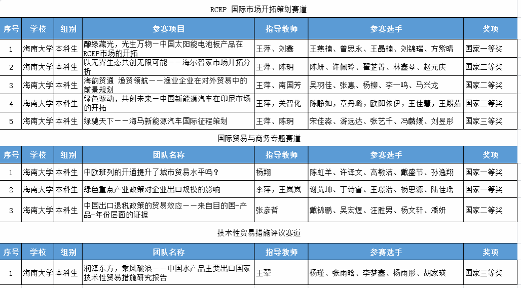 竞赛分为RCEP国际市场开拓策划赛道、国贸与商务专题及技术性贸易措施评议赛道3个赛道。在RCEP国际市场开拓策划赛道,bevictor1946韦德官网获国家级一等奖1项,国家级二等奖3项,国家级三等奖1项;在国贸与商务专题,bevictor1946韦德官网获国家级一等奖2项,国家级二等奖1项;在技术性贸易措施评议赛道,bevictor1946韦德官网获得国家级三等奖1项。