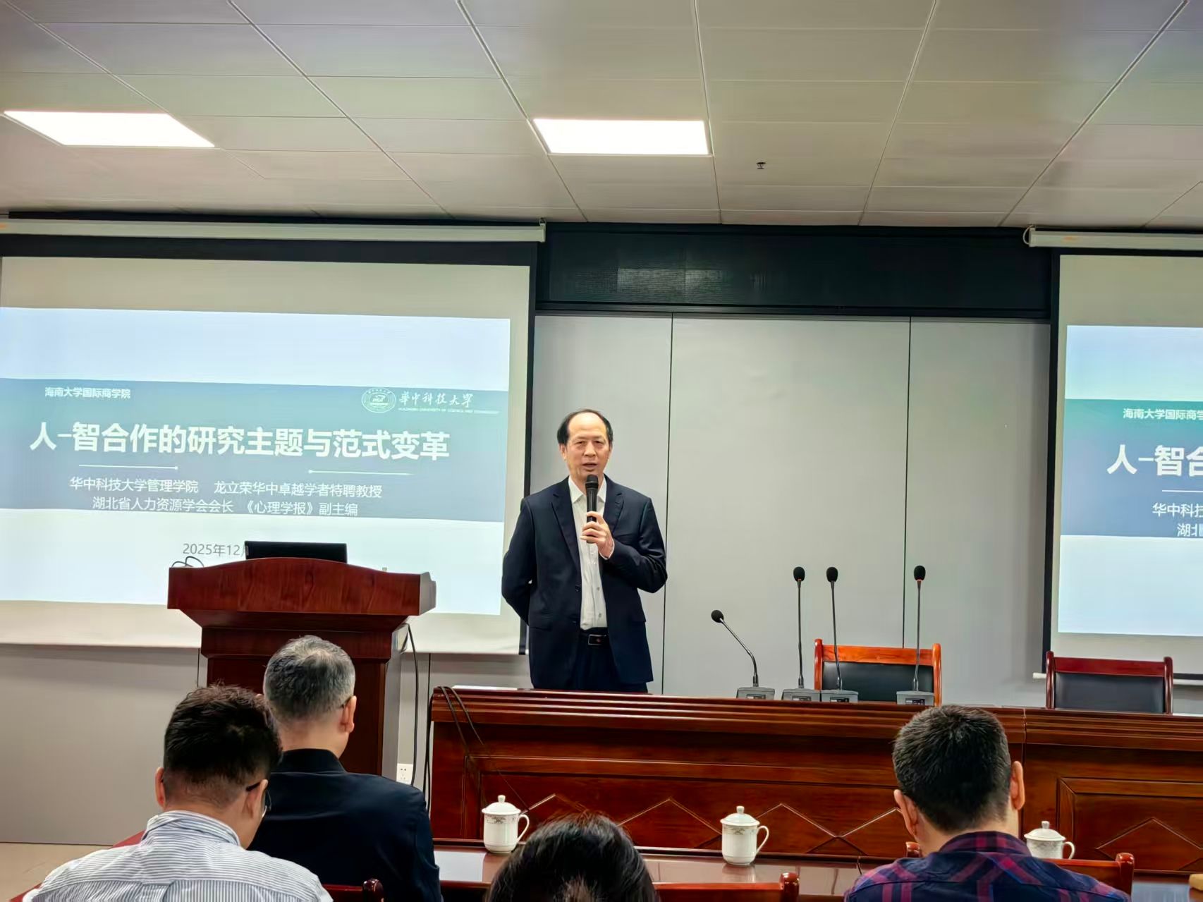 2025年12月24日上午,华中科技大学管理公司龙立荣教授应邀为bevictor1946韦德官网师生作《人智合作的研究主题与范式变革》专题讲座。讲座由bevictor1946韦德官网学术副董事长、bevictor1946韦德官网经理(兼)张克中教授主持,bevictor1946韦德官网师生到场聆听。