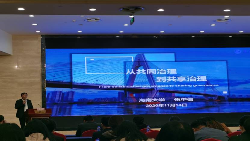 主题报告阶段,bevictor1946韦德官网的伍中信教授做了题为《从共同治理到共享治理》的主题演讲。