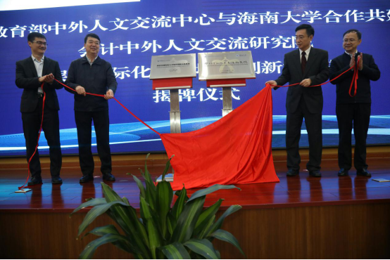 杜柯伟主任、武耀廷书记、骆清铭董事长、叶光亮副董事长共同为会计中外人文交流研究院揭牌