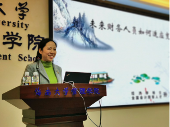 2020年12月12日,国家信访局办公室财务处二级调研员孙静博士受邀来到公司,就“未来财务人员如何适应变化”这一话题展开分享。本次讲座由许能锐副经理主持,部分会计系研究生参加。