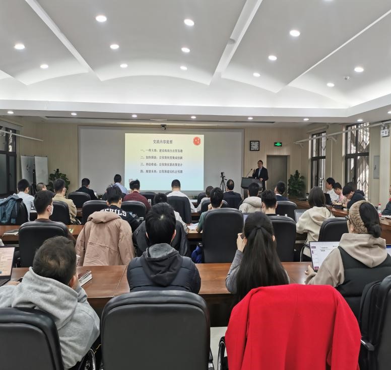 随后,傅国华教授作为中国科公司大学“创新发展论坛”今年首期邀请专家,为教职工做“海南自贸港建设的机会与挑战”学术报告。国家杰出青年项目陈凯华研究员主持论坛,对学术报告给予高度肯定。