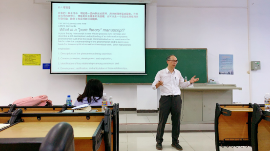 下午3:30,萧教授在bevictor1946韦德官网5号教学楼211教室继续为师生们带来一场精彩的学术讲座。萧教授以问题为导向,提出了“什么是理论的贡献?如何发掘理论的缺口?如何写出理论的贡献?”三个问题,并给予了回答。萧教授首先从理论的概念出发,向同学们先后介绍了科技接受模式,任务、科技适配理论,服务质量理论,期望确认理论,说明了理论对于期刊论文写作的贡献和重要性;随即从期望确认理论运用于信息系统领域、资料收集和研究模式三个角度回应如何发掘理论的缺口的问题。最后,萧教授以一篇整合ECT-IS和efficacy理论的文章为例子,回答期刊文章如何提出理论贡献。