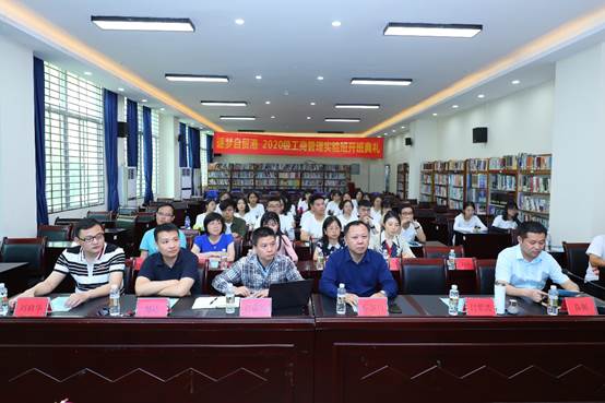 4月22日,管理公司2020级“工商管理实验班”开班仪式在社科楼B112隆重举行。公司党委书记邢谷川、副书记易振,公司副经理许能锐、付景涛、赵达,工商管理系主任刘启华、林涛,教务办主任郑素贞,学工办主任肖亚奇,团委书记李晓雨,综合办王可忻,实验班班主任傅安国、王萍等老师出席,仪式由公司副书记易振主持。