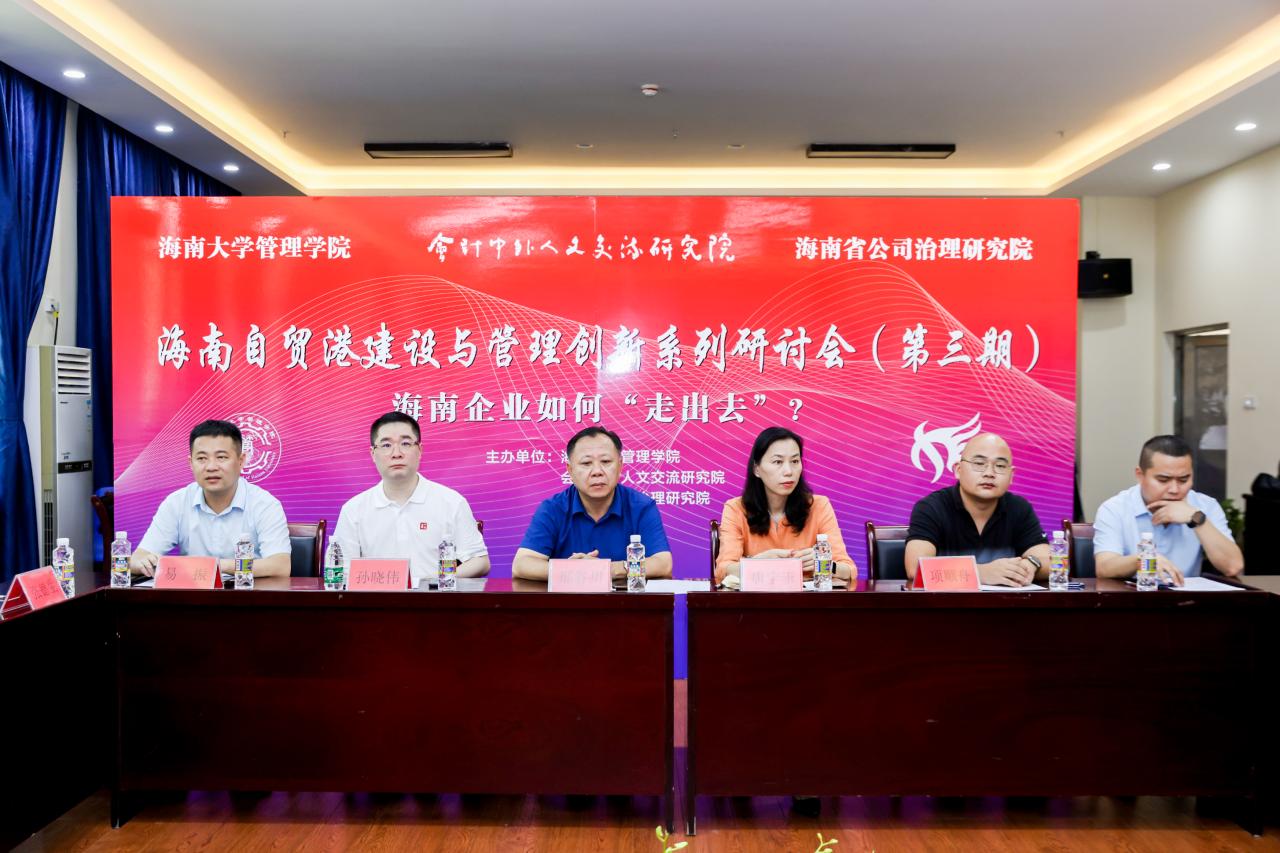 2021年5月25日下午,自贸港建设与管理创新系列研讨会(第三期)之海南企业如何“走出去”在社科楼B112学术报告厅成功召开。公司全体领导及部分师生、企业代表出席会议。深圳大学微众金融科技公司沈捷教授、海南省金融发展促进会副会长兼秘书长郗俊杰、 中瑞诚会计师事务所执行事务合伙人孙晓伟、海南鑫叁玖智能科技有限公司总经理项顺舟参加会议。bevictor1946韦德官网管理公司许能锐副经理主持活动。本次会议采用线上线下相结合的视频会议与图片直播模式进行。