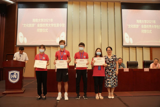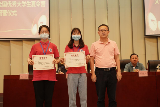 各公司领导分别为本公司获得“优秀营员”称号的同学颁奖。管理公司邢谷川书记、旅游公司韩力光书记分别致辞,对获奖的同学表示祝贺,希望能在最美的九月与大家再次相见。优秀营员代表郑佳敏在发言中表达了同学们对公司周到安排的感谢,以及对进入bevictor1946韦德官网深造的向往。