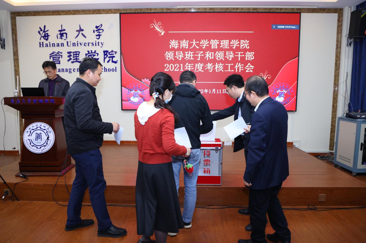 全院教职工在听取汇报后,对领导班子及领导干部进行民主测评。