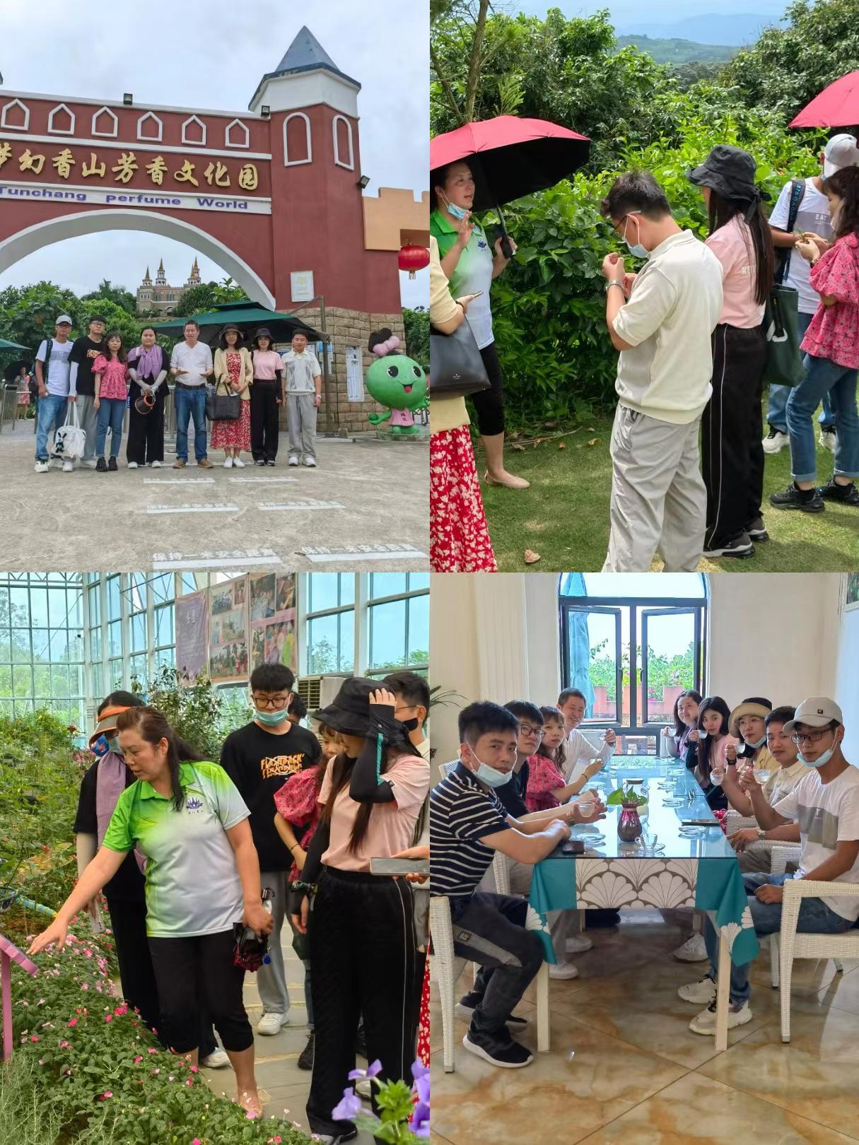 调研团在工作人员的引领下品尝了特色产品,并开展了座谈会,师生与工作人员就农庄发展历史与成效、现实困境等问题进行充分交流,一致认为庄园后续发展还需要资本进驻、坚持“芳香文化”定位,走差异化发展道路,持续为乡村振兴和海南自贸港建设服务。与此同时,双方还进一步探讨了设置管理公司产学研基地的可能性。