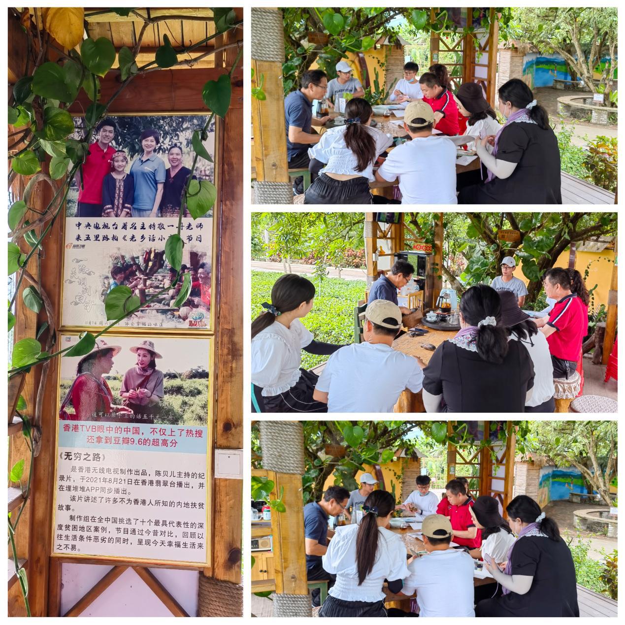第二站到达五里路有机茶园,在茶园负责人王经理的带领下,调研团品尝了有机茶、听取创业故事、参观茶园,了解到鉴定有机茶其中一个标准是茶树是否被虫子啃食过。
