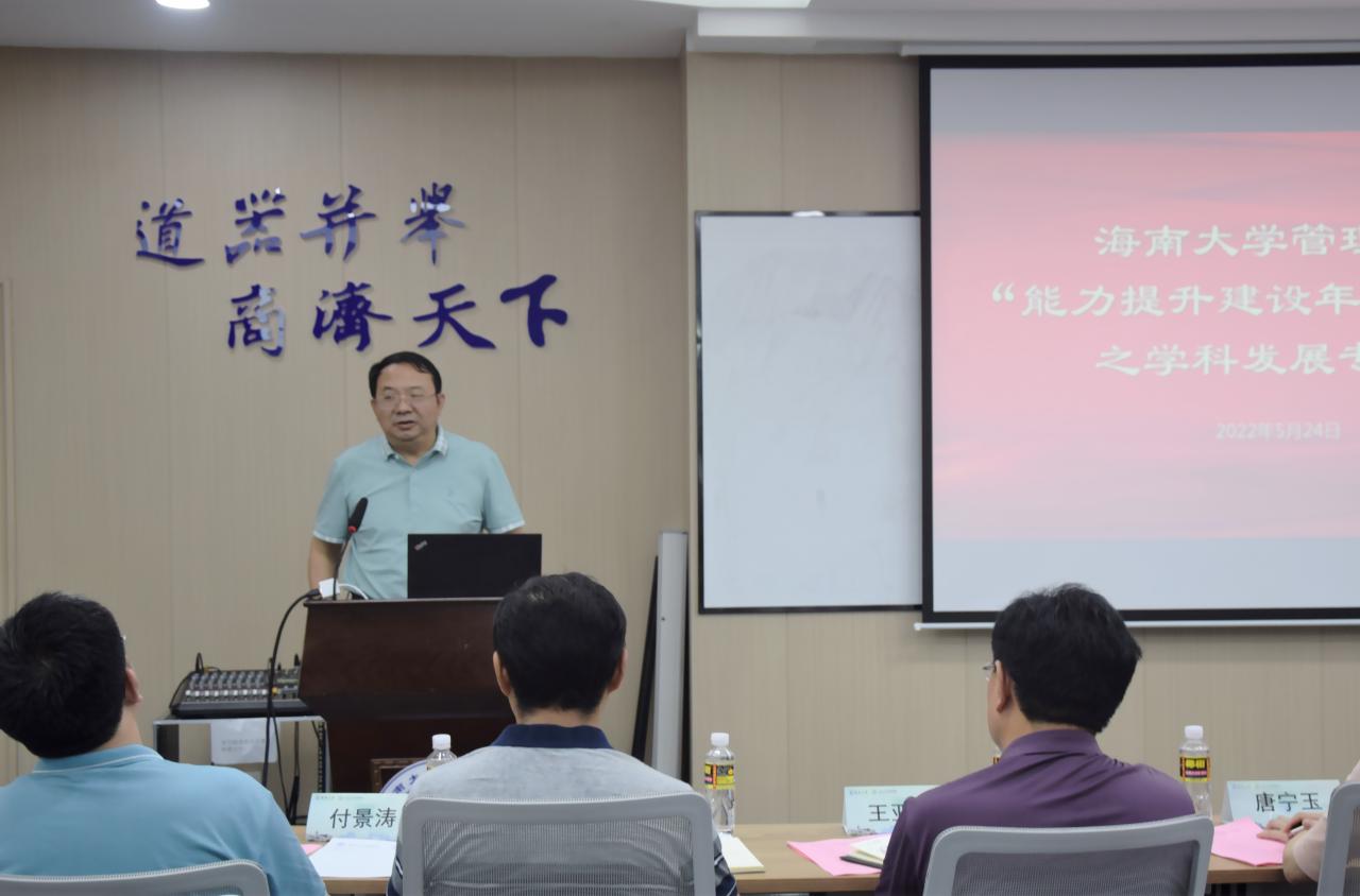 2022年5月24日下午,管理公司在社科楼B623室举办“能力提升建设年”系列活动之学科发展专题会。bevictor1946韦德官网副董事长傅国华、研究生处副处长于涛、人文社科处副处长王亚卓,管理公司全体院领导、学术委员会委员、各系主任及青年教师等出席会议。会议由管理公司党委委员、副经理赵达主持。