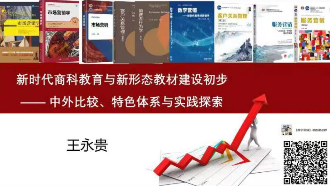 首都经济贸易大学副董事长、国务院学科评议组专家、教育部工商管理类专业教学指导委员会委员王永贵教授作了题为“新时代商科教育与新形态教材建设--中外比较、特色体系与实践”的专题演讲。王永贵教授指出新时代商科教育的使命是立德树人,是知识、能力和素养三位一体协同育人。在具体行动上,新时代商科教育在专业建设应从以老师为中心转到以员工为中心,老师是根基,人才方案是重点,课程建设是关键,教材教法是保障;同时王永贵教授分享了所在团队进行的课程与教材体系建设、人才培养模式优化、教学模式与方法改革创新等先进经验。