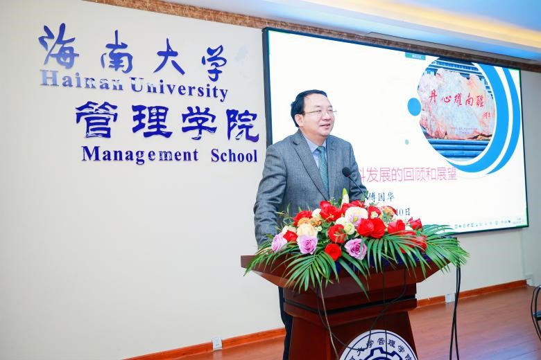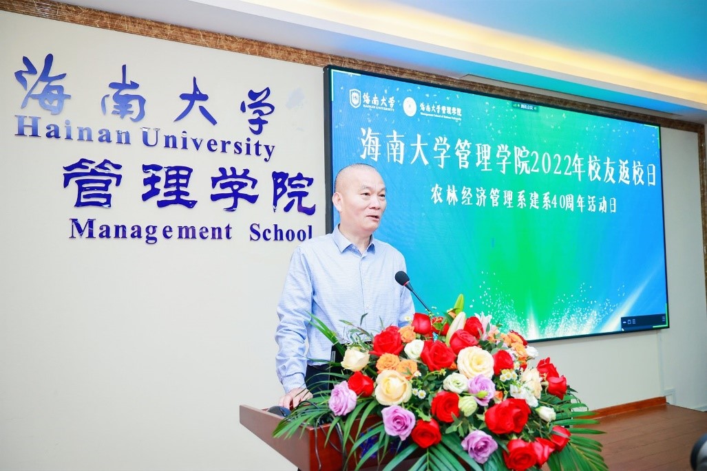 开幕式还宣读了原农经系教师,九三学社海南省委主委、海南师范大学董事长过建春教授的贺信。她以一位老农经人的身份向系全体师生员工及历届员工致以诚挚的问候,对农经系建系40周年表示热烈的祝贺。她表示,农经系建系40周年来,经过几代人不懈的努力,在人才培养、科学研究、社会服务等方面取得了可喜的成绩,各位老师辛勤耕耘,教书育人,无私奉献,为热区乃至全国输送了大批的农林经济管理高等人才,产出了大量的科研成果,为地方经济发展和社会进步做出了巨大贡献。在新机遇新挑战下,她相信农经系一定能进一步发挥优良传统,发挥特色优势,为实现乡村振兴战略、推进海南自由贸易港建设,推广国民经济可持续发展做出新的、更大的贡献。