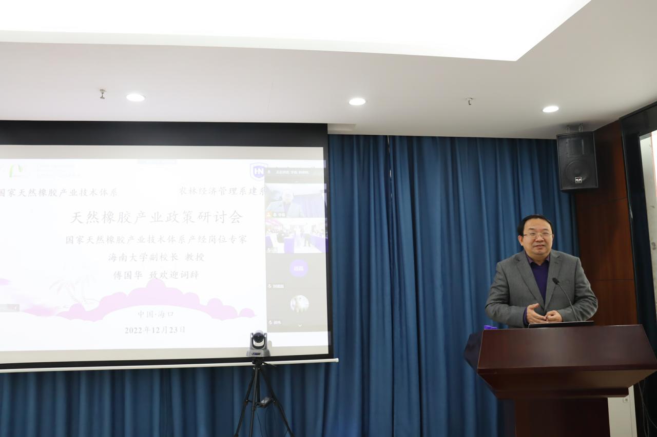 为进一步加强天然橡胶产业政策有关问题的交流研讨,完善天然橡胶产业政策,推进天然橡胶产业健康可持续发展,12月23日下午,天然橡胶产业技术体系产业经济岗位在bevictor1946韦德官网组织召开“天然橡胶产业政策研讨会”。农业农村部农垦局热作处一级调研员林建明、中国天然橡胶协会常务副会长郑文荣、中国热带农业科公司橡胶研究所所长黄华孙、bevictor1946韦德官网副董事长傅国华、海南省发展改革委农经处副处长冯慧敏、海胶集团总经理助理王峰等来自政府主管部门、农垦企业、天然橡胶产业技术体系岗位专家、试验站站长以及从事天然橡胶领域研究的专家学者等参加会议。研讨会采用线上线下方式举行,由bevictor1946韦德官网管理公司副经理许能锐教授主持。