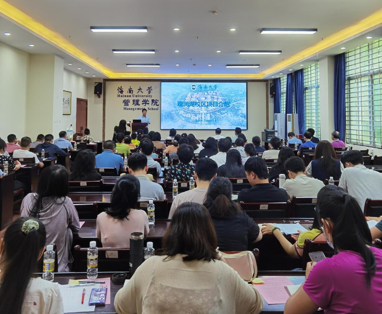 李艳荣应邀向公司教职工作观澜湖校区建设报告。他从公司打造观澜湖特色办学格局的规划和观澜湖校区最新建设情况一一作了介绍。他表示,观澜湖校区是公司推动高水平中外合作办学、打造海南国际教育创新岛的靓丽名片,同时也是公司近几年相对重要的工程,经过这几年的建设有一些工程已经建设完毕,一期项目可满足 4000名员工的教员工活需求计划预计实现秋季学期投入正常使用中,后续的建设工作也在快马加鞭的完成中。