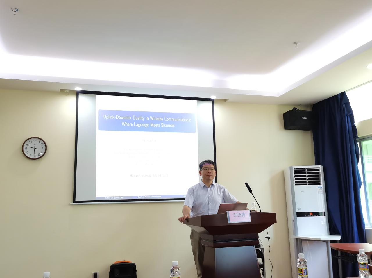 2023年7月4日,中国科公司数学与系统科学研究院刘亚锋应邀作了主题为《Uplink-Downlink Duality in Wireless Communications: Where Lagrange Meets Shannon》的专题讲座。本次讲座通过线下的方式进行,管理公司部分师生参加讲座。