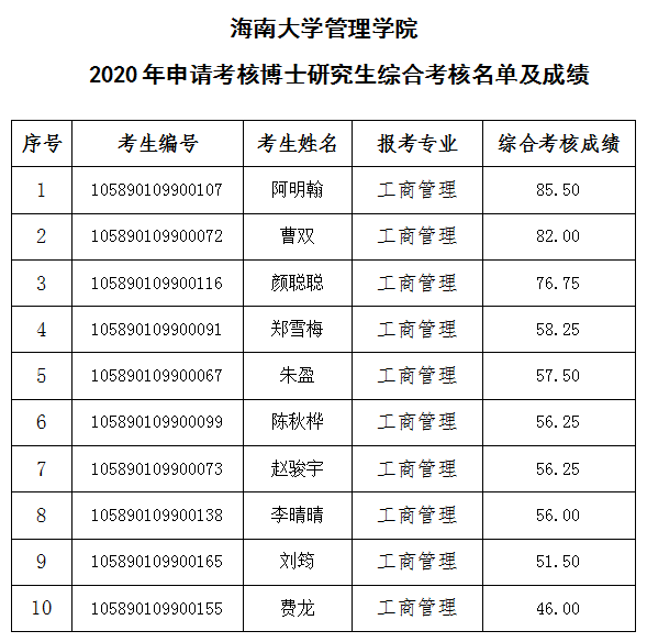 bevictor1946韦德官网管理公司2020年申请考核博士研究生综合考核名单及成绩