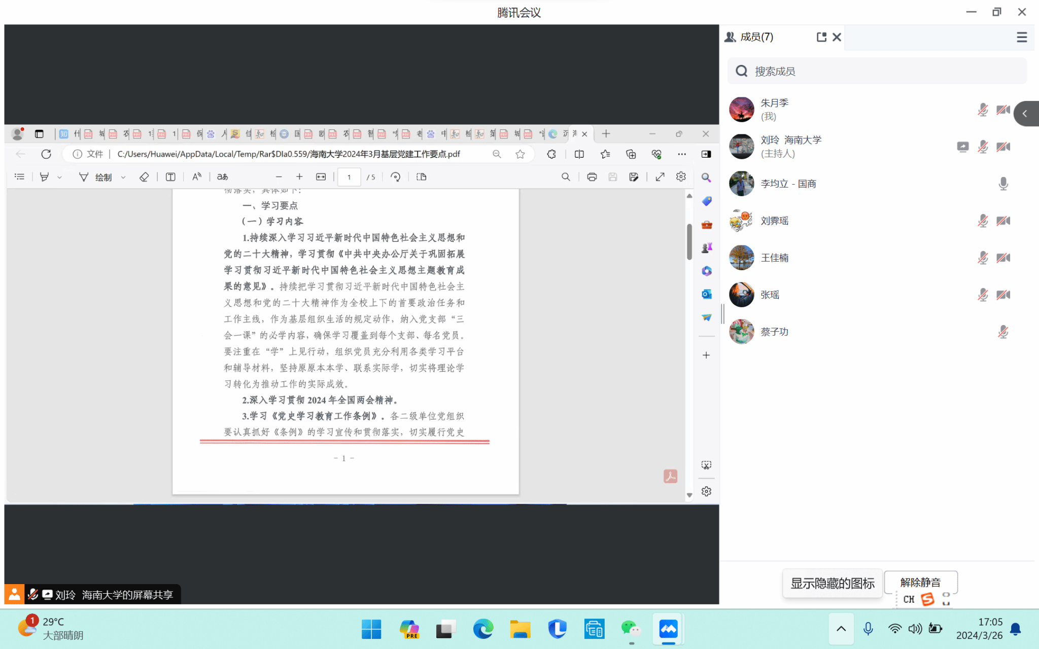 各支部结合学习内容进行了研讨,大家一致认为全面从严治党是党永葆生机活力、走好新的赶考之路的必由之路。在强国建设、民族复兴的新征程上,让我们更加紧密地团结在以习近平同志为核心的党中央周围,深入学习贯彻习近平总书记关于党的自我革命的重要思想,持之以恒净化政治生态,锲而不舍建设新时代廉洁文化和清廉校园建设,不断夺取党风廉政建设和反腐败斗争新胜利,把我们党建设得更加坚强有力。