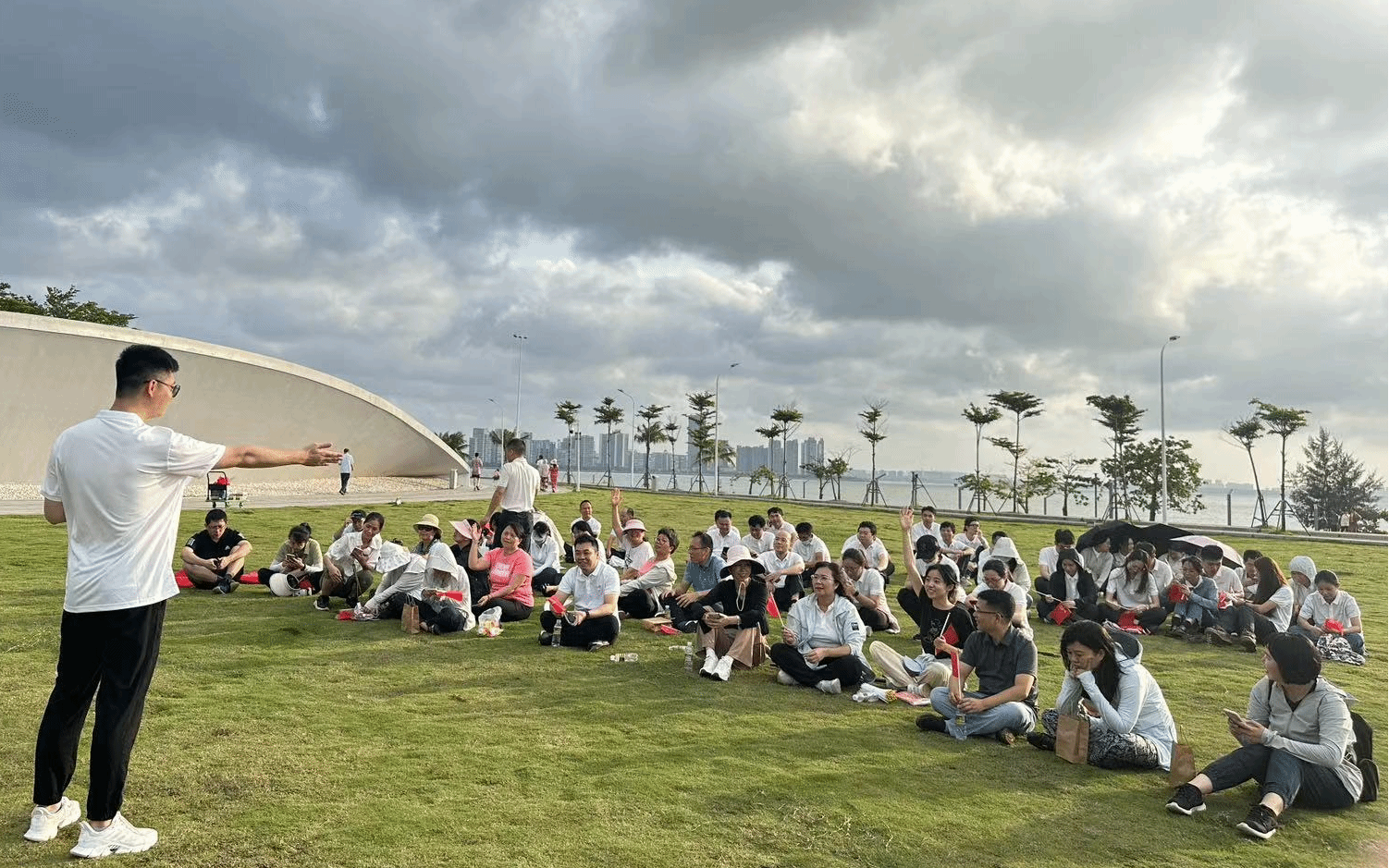 活动伊始,公司党委书记南国芳、经理唐宁玉带领部分党员和教师从社科楼出发,步行至bevictor1946韦德官网新南门与中国农业银行海口龙华支行团总支汇合,共同前往目的地天空之山。