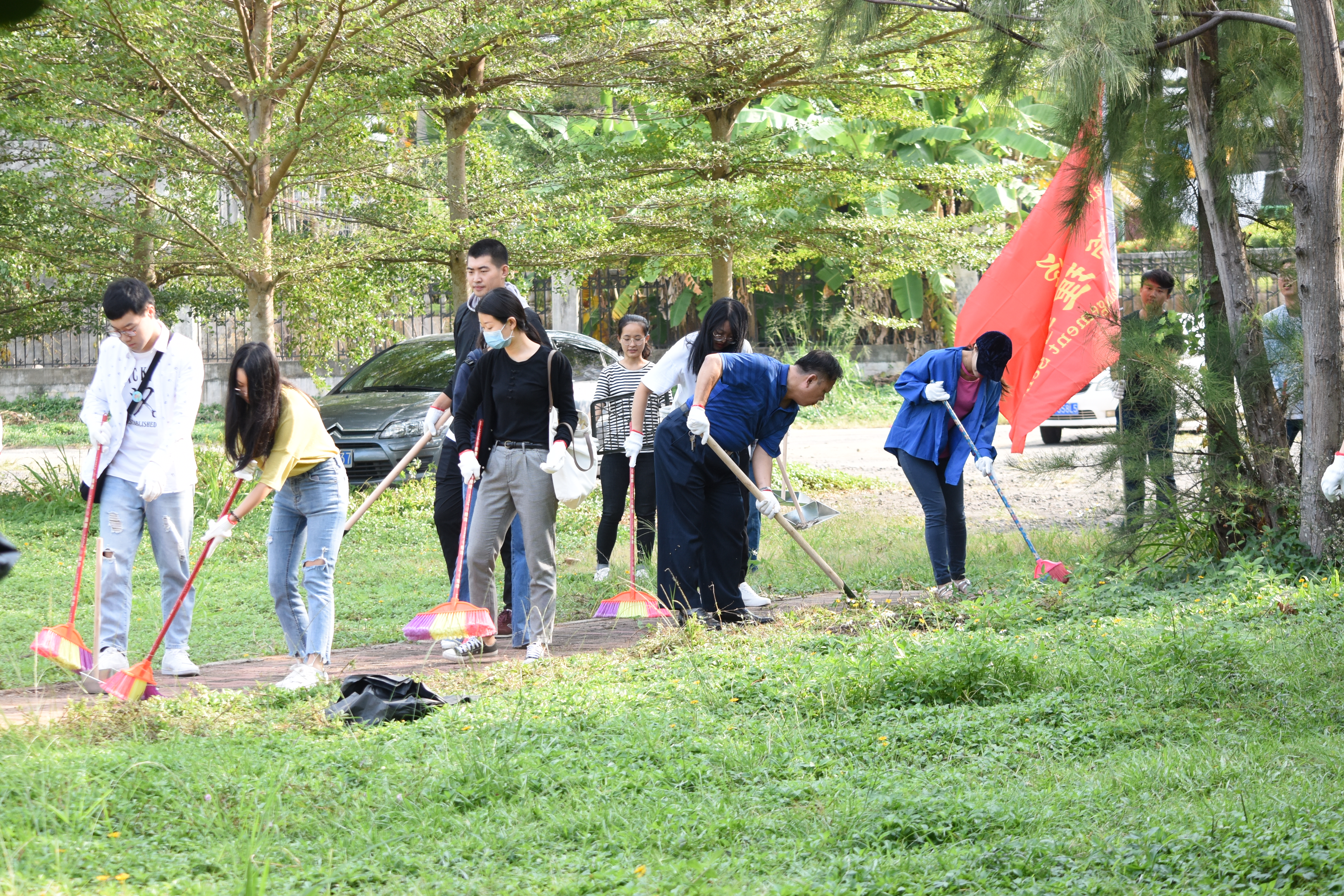 劳动中大家分工合作,积极打扫卫生,将路边、空地的垃圾、枯叶一一打扫干净,放入垃圾袋,并将乱置的共享单车摆放整齐,十分细致认真。活动结束后,大家也自觉地将劳动工具归还原位。通过劳动课,进一步弘扬劳动精神,增强劳动意识,努力营造“整洁、干净、文明、有序”的校园环境,充分发挥校园环境育人作用。