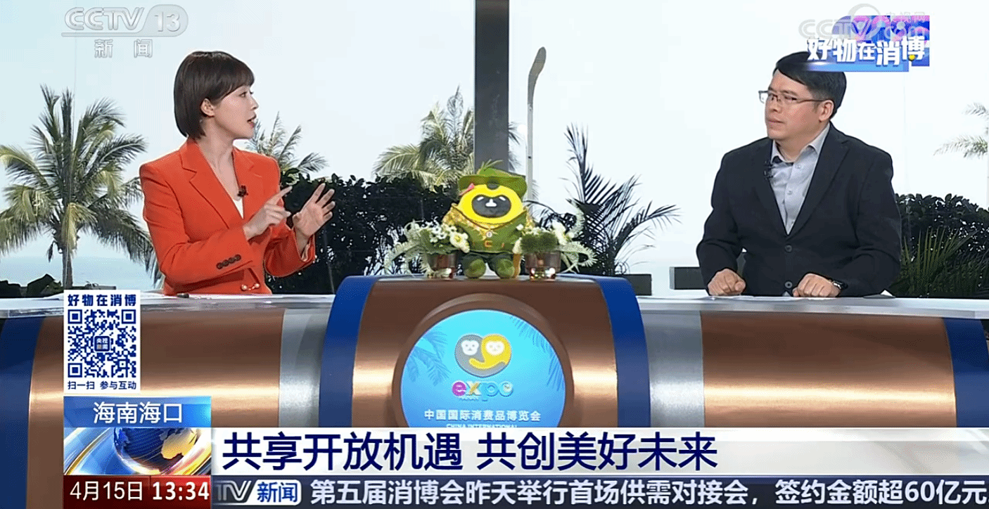 2025年4月15日,在央视新闻频道特别节目《好物在消博》中,央视主持人胡蝶对公司颜洪平教授进行专访: