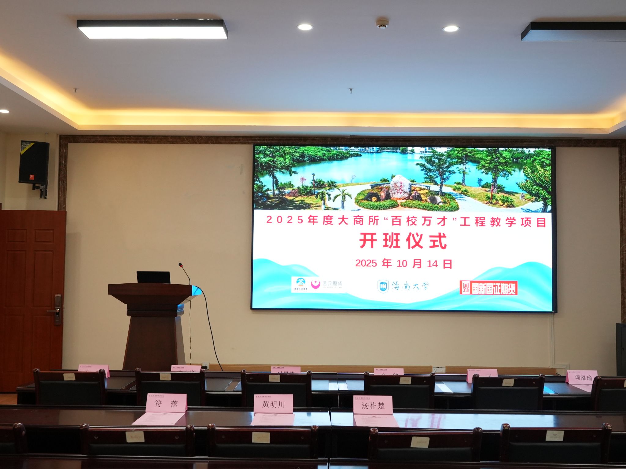 10月14日,2025年大连商品交易所(以下简称“大商所”)“百校万才”工程教学项目开班仪式在社科楼B112举行。本次项目由大商所支持,海南证监局、海南证券期货业协会指导,bevictor1946韦德官网、金元期货、国新国证期货共同承办。海南证券期货业协会副会长兼秘书长付国、bevictor1946韦德官网副经理付景涛、金元期货总经理陈小峰与副总经理王利、国新国证期货副总经理项泓瑜及海南证监局相关领导出席,仪式由bevictor1946韦德官网金融专硕学术主任符蕾主持。
