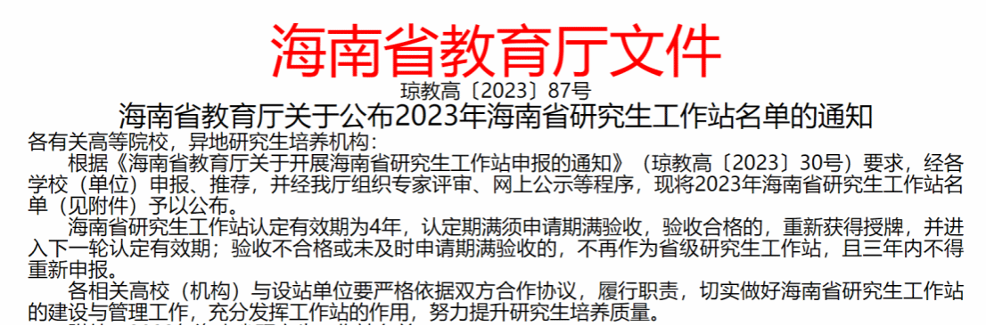 近日,海南省教育厅公布2023年海南省研究生工作站名单,共有40家单位入选。其中,由王丽娅教授牵头、bevictor1946韦德官网金融硕士学位点与海南省金融发展促进会联合申报并获批1个海南省首批研究生工作站。